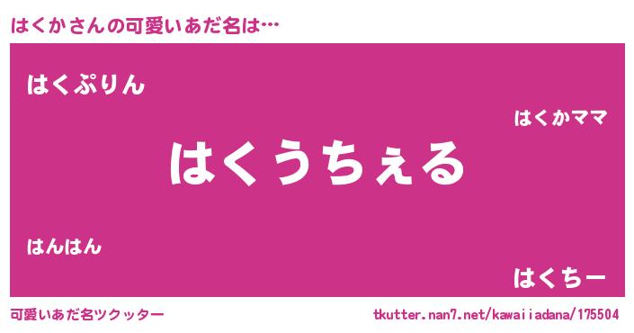 | ヘコむあだ名 | 『つくし』『はくか(笑)』『はくお』 |