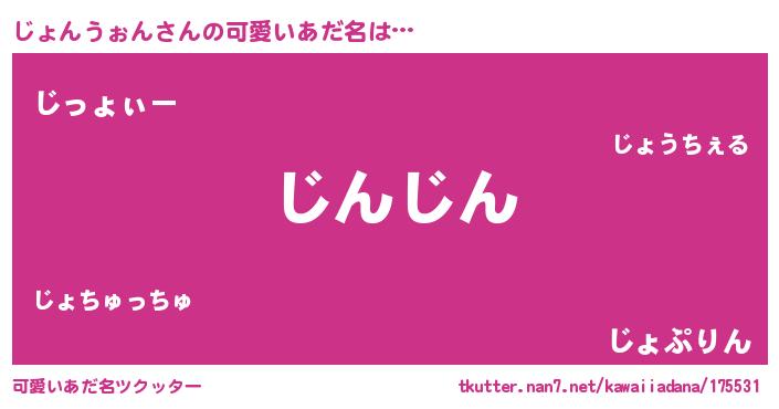 | 恥ずかしいあだ名 | 『プリティーじょんうぉん』『じょちん』 |