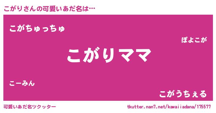 | 意味不明あだ名 | 『永久保存こがり』『自称こがり』 |