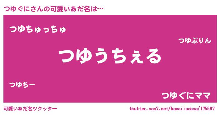 | 男性向けラノベタイトル風あだ名 | 『Re:つゆぐにから始める異世界生活』 |