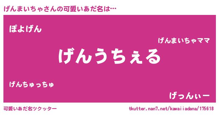| 意味不明あだ名 | 『自称げんまいちゃ』 |