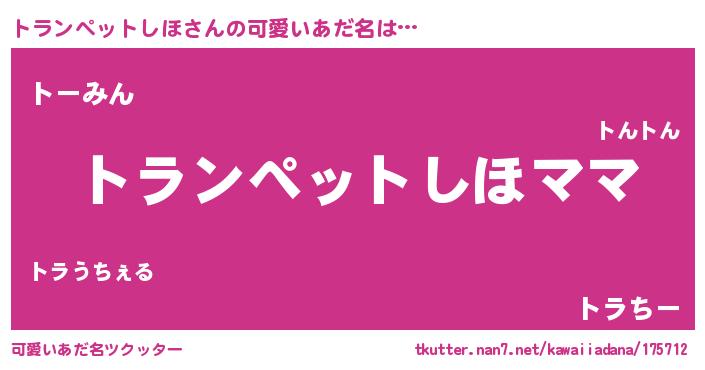 | 胡散臭い通販商品みたいなあだ名 | 『来世でも幸せになれる水素水…その名も「トランペットしほ」』 |