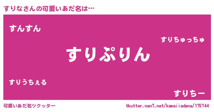 | 意味不明あだ名 | 『もやし科すりな属』『ペロリンすりな』 |