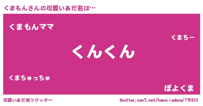 | 意味不明あだ名 | 『ペロリンくまもん』『永久保存くまもん』 |