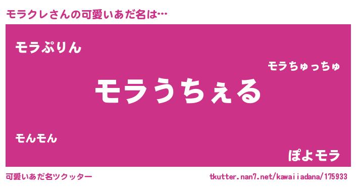 | 恥ずかしいあだ名 | 『モラクレデラックス』『モラっちょ』 |