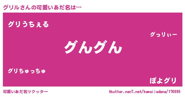 | 意味不明あだ名 | 『ペロリングリル』『自称グリル』 |