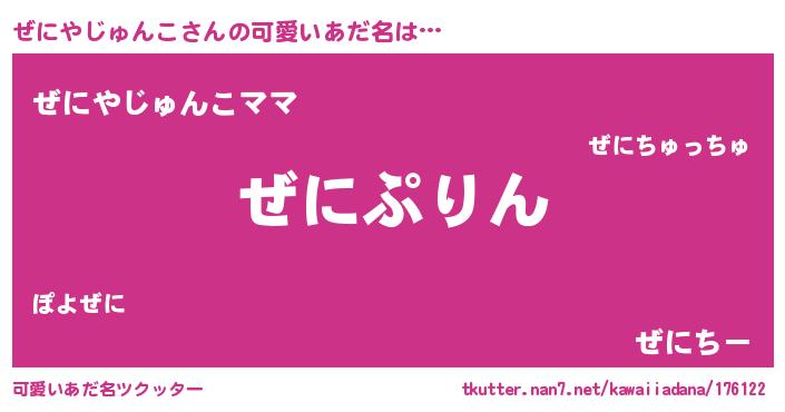 | 男性向けラノベタイトル風あだ名 | 『転生したらぜにやじゅんこだった件』 |