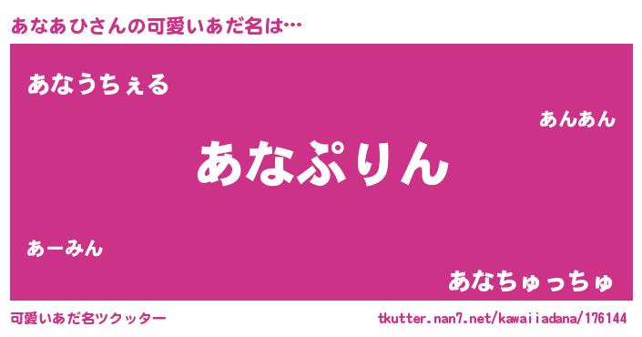| 意味不明あだ名 | 『たけのこ科あなあひ属』『自称あなあひ』 |