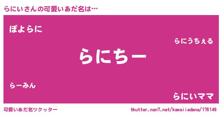 | 意味不明あだ名 | 『らにいフォーエバー』『永久保存らにい』 |