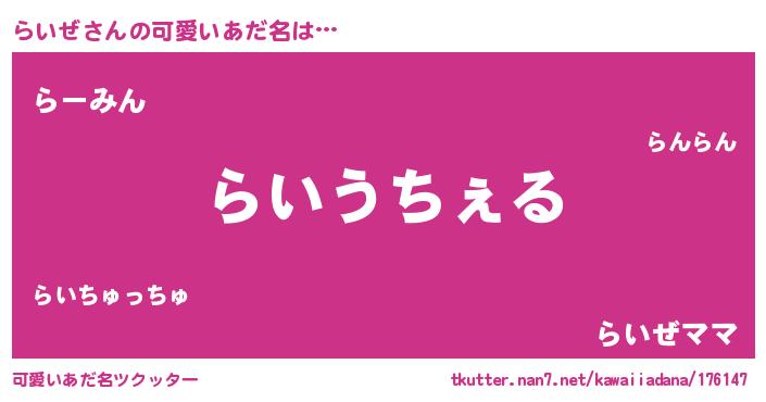 | 意味不明あだ名 | 『自称らいぜ』『永久保存らいぜ』 |