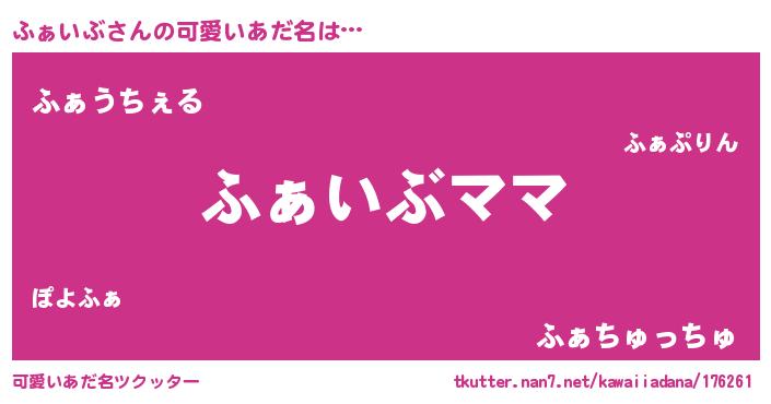 | 意味不明あだ名 | 『永久保存ふぁいぶ』『自称ふぁいぶ』 |