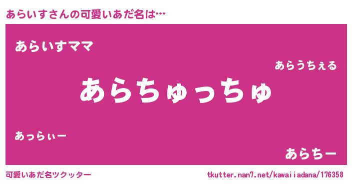 | ヘコむあだ名 | 『あらいす(苦笑)』『豆乳』 |