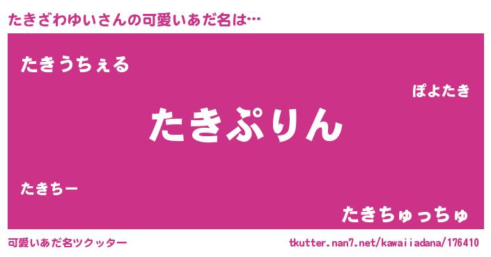 | 恥ずかしいあだ名 | 『タキザワユイデラックス』『たきっちょ』 |