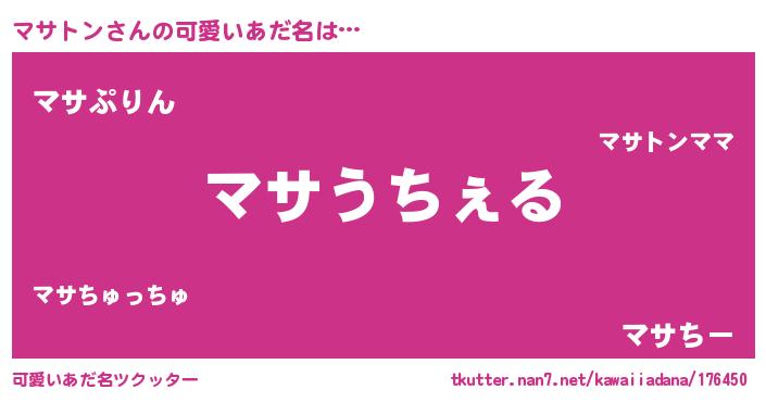 | 女子向けラノベタイトル風あだ名 | 『マサトンなんてお断りですっ。』 |