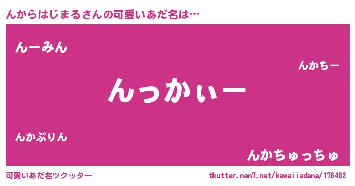 | 女子向けラノベタイトル風あだ名 | 『んからはじまるの卵を拾いまして』 |