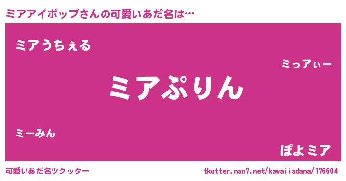 | 男性向けラノベタイトル風あだ名 | 『はたらくミアアイポップさま!』 |
