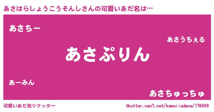 女子向けラノベタイトル風あだ名 | 『あさはらしょうこうそんしの玉の輿計画!』 |