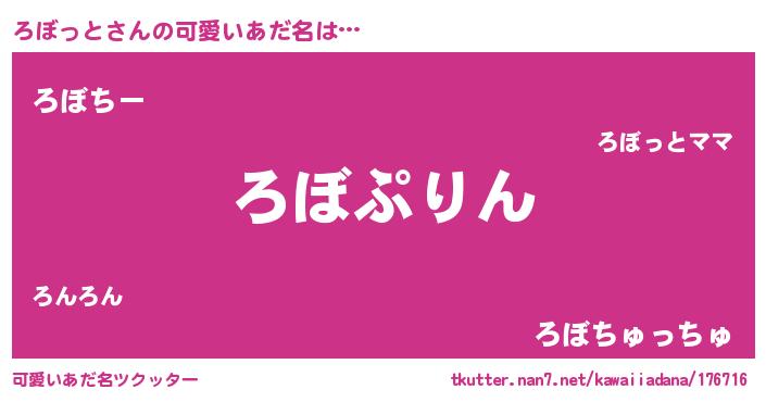 | 恥ずかしいあだ名 | 『ろぼっちょ』『ボンバーヘッドろぼ』 |