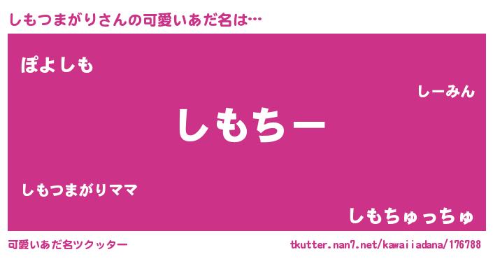 | 意味不明あだ名 | 『しもつまがりフォーエバー』 |