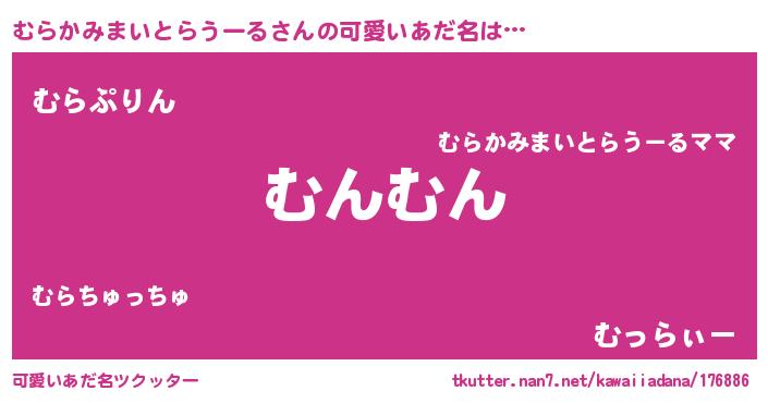 | 男性向けラノベタイトル風あだ名 | 『むらかみまいとらうーるの憂鬱』 |