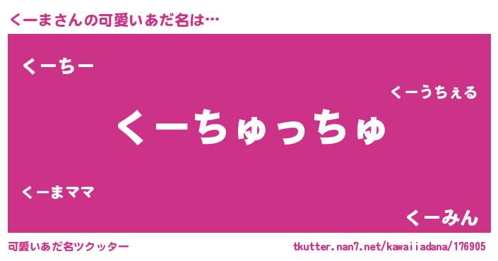 | ヒーロー風カッコイイあだ名 | 『慈愛の使者くーま』『最強戦士クーマ』 |
