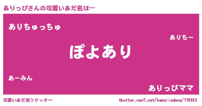 | ヘコむあだ名 | 『ありっぴ(笑)』『酢こんぶ』 |