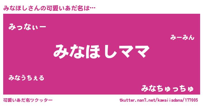 | 意味不明あだ名 | 『永久保存みなほし』『自称みなほし』 |