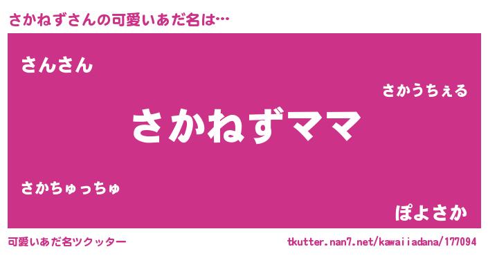 | 意味不明あだ名 | 『永久保存さかねず』『ペロリンさかねず』 |