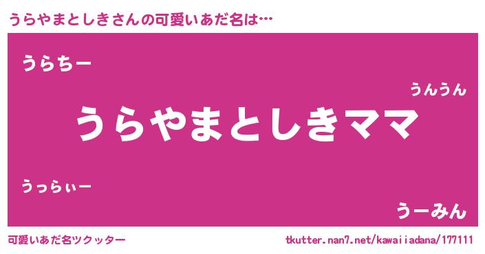 | 男性向けラノベタイトル風あだ名 | 『うらやまとしきという概念が存在しない退屈な世界 』 |
