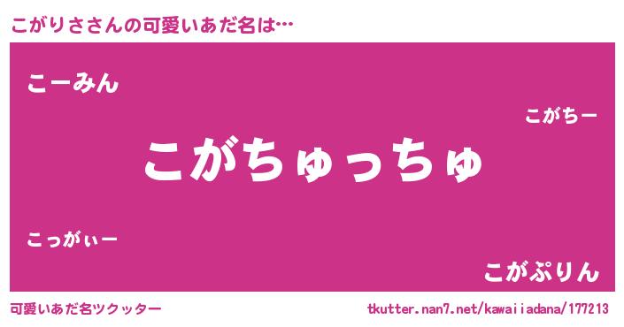 | ヒーロー風カッコイイあだ名 | 『正義の使者こがりさ』『幻影騎士コガ』 |
