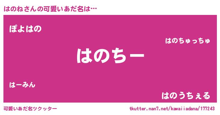 | 意味不明あだ名 | 『はのねフォーエバー』『自称はのね』 |