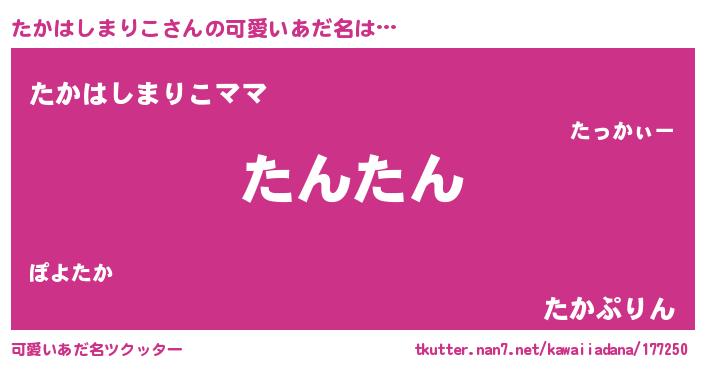 | ヘコむあだ名 | 『たかもー』『たかはしまりこ(遠い目)』 |