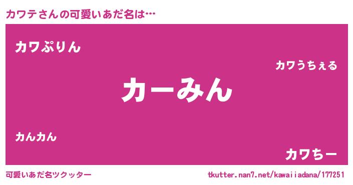 | ヒーロー風カッコイイあだ名 | 『ウルトラカワテマン』『究極戦士カワテ』 |
