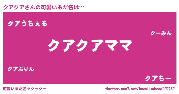 | 意味不明あだ名 | 『永久保存クアクア』『自称クアクア』 |