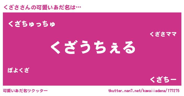 | 意味不明あだ名 | 『自称くざさ』『眠気覚ましガムくざさ味』 |