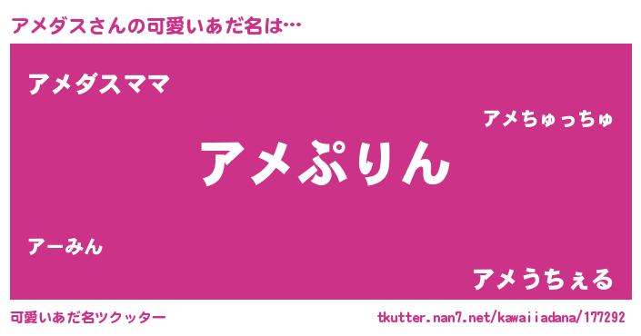 | 恥ずかしいあだ名 | 『アメちん』『アメダスデラックス』 |