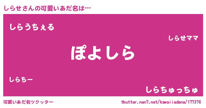 | 意味不明あだ名 | 『住所不定無職しらせ(8歳)』『自称しらせ』 |