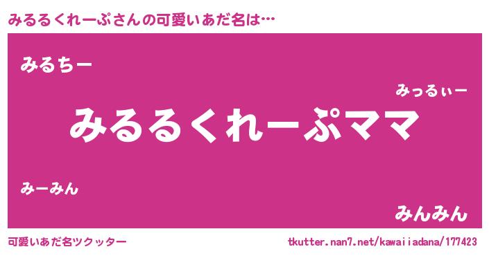 | 意味不明あだ名 | 『永久保存みるるくれーぷ』 |