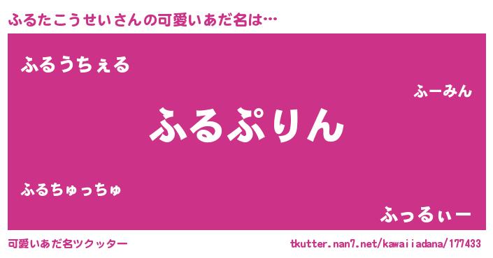 | 男性向けラノベタイトル風あだ名 | 『ふるたこうせい~年齢イコール彼女いない歴の魔法使い~』 |