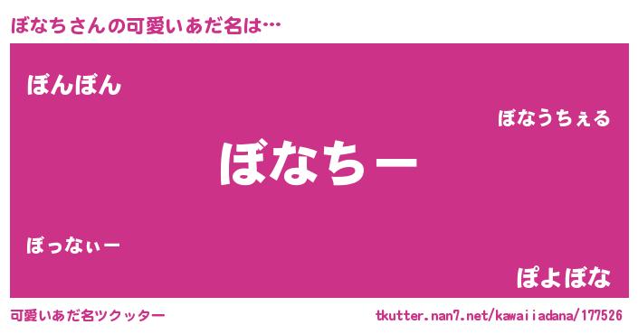 | 男性向けラノベタイトル風あだ名 | 『ぼなちに滅ぼされるだけの簡単なお仕事です』 |
