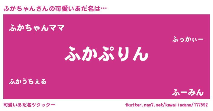| 男性向けラノベタイトル風あだ名 | 『転生したらふかちゃんだった件』 |