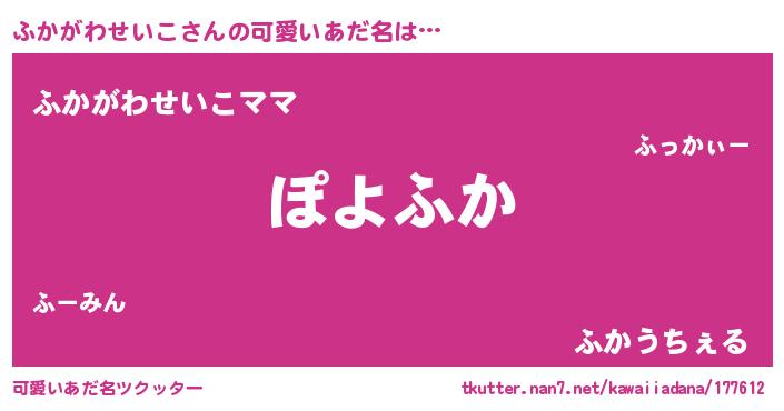 | ヘコむあだ名 | 『ふかがわせいこ(笑)』『ふかお』 |