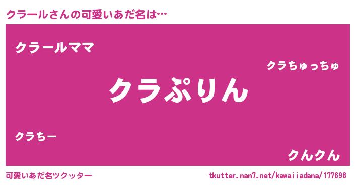 | ヘコむあだ名 | 『クラール(笑)』『クラにー』『豆乳』 |