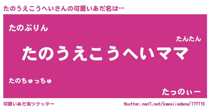 ヘコむあだ名 | 『たのうえこうへい(笑)』『たのっちょ』 |