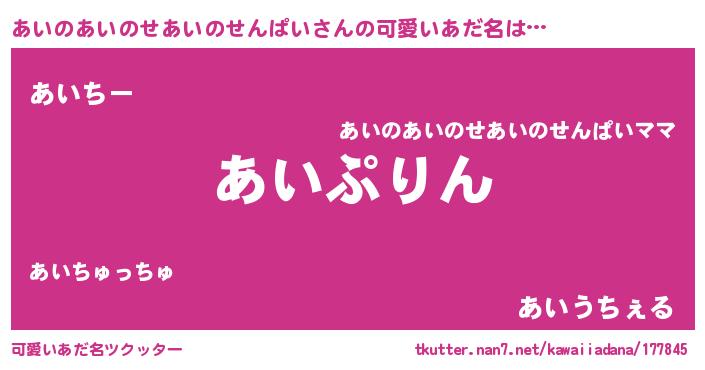 | 男性向けラノベタイトル風あだ名 | 『転生したらあいのあいのせあいのせんぱいだった件』 |