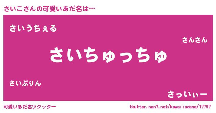 | ヘコむあだ名 | 『さいぷりん』『さいっふぃ~』 |
