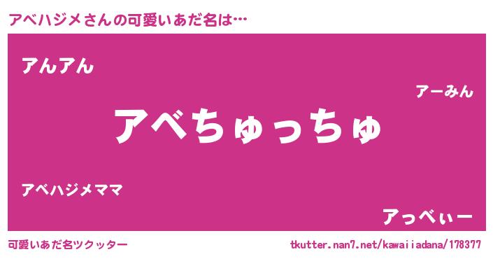 | 男性向けラノベタイトル風あだ名 | 『ノーゲーム・ノーアベハジメ』 |