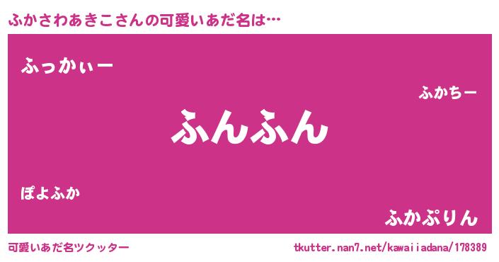 | 男性向けラノベタイトル風あだ名 | 『ふかさわあきこに滅ぼされるだけの簡単なお仕事です』 |