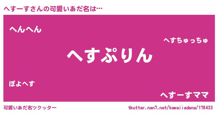 | 料理風あだ名 | 『へすーすごはん』『へすーすのトマト煮』 |