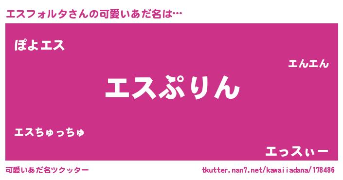 | 女子向けラノベタイトル風あだ名 | 『エスフォルタの玉の輿計画!』 |